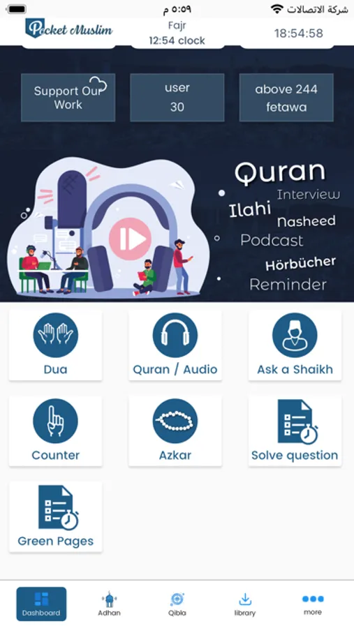 Die App verfügt auch über einen Counter, damit Benutzer ihre Dhikr nach dem Gebet zählen können, ohne sich zu verzählen. Es gibt auch eine Vielzahl von Hörbüchern auf Deutsch und in anderen Sprachen sowie eine Nasheed Rubrik, in der Benutzer islamische Lieder hören und genießen können.