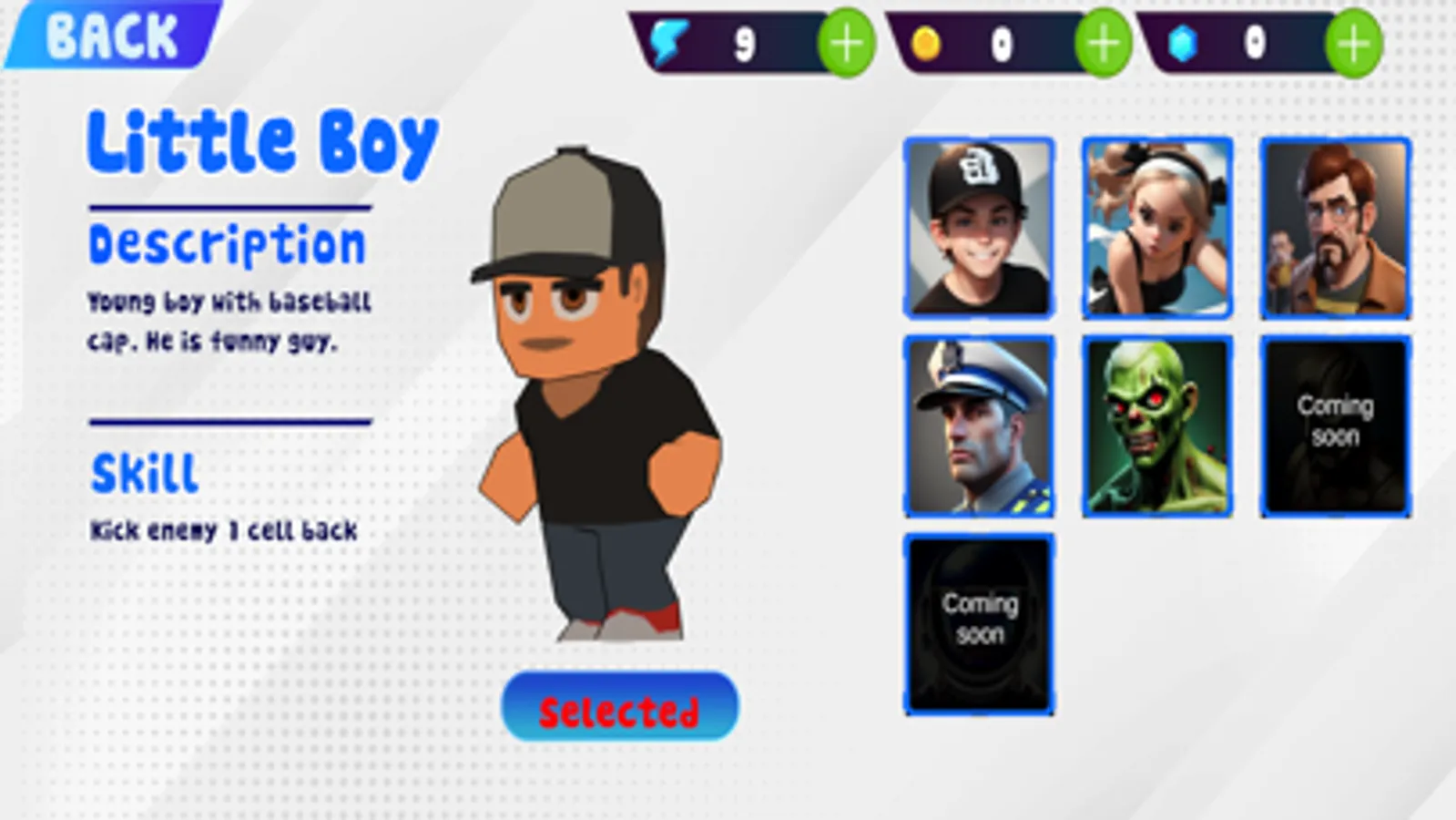 This game is a board game with dice, there are many characters with different skill to win the race. Each map has many obstacles, user will roll a dice to go forward and win a game.