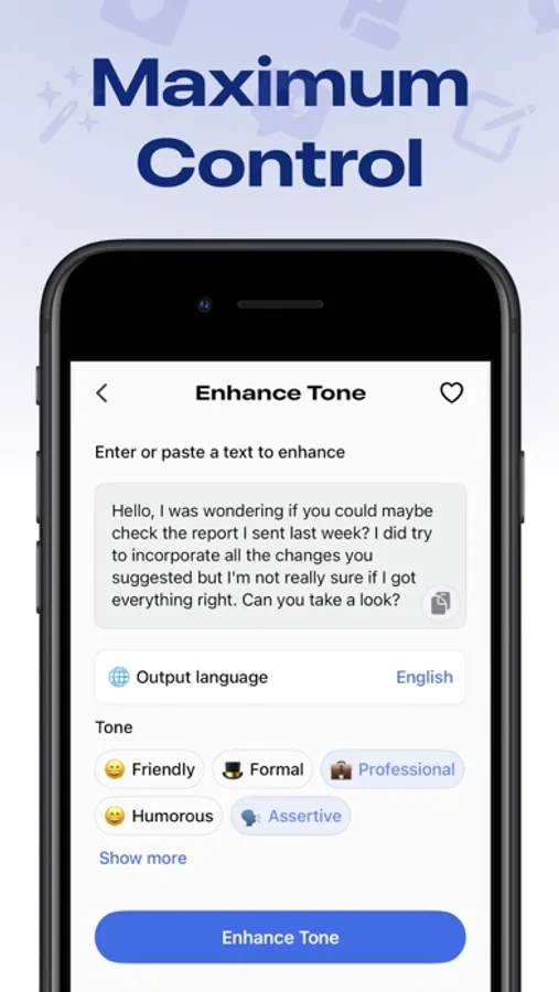 Tone Enhancement: Convey emotions better. Whether you want your text to sound formal, casual, positive, or any other tone, our AI moulds it to your needs.