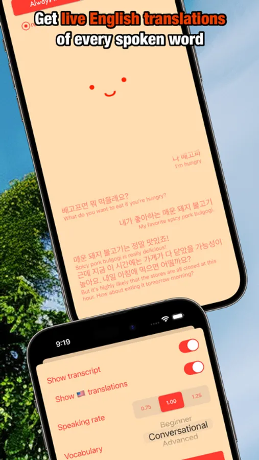 "Practice Korean with Sheila" goes above and beyond by offering you a seamless learning experience. The app provides a handy transcript of your conversations, allowing you to review and analyze your progress at any time. What's more, Sheila's capabilities extend beyond comprehension - she can even provide live English translations for anything you or she says, making it easier for you to grasp the nuances of the Korean language in real-time.