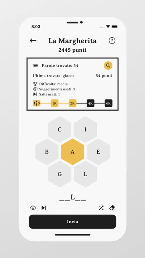 • Vinci raggiungendo il traguardo trovando tutte le parole e guadagnando più punti possibili