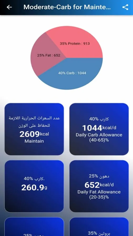 يعتمد هذا التطبيق على بيانات الطول والوزن والنشاط البدني والعمر والجنس لتحديد احتياجاتك اليومية من البروتين والدهون والكربوهيدرات. بعد ذلك ، يمكن للمستخدم تسجيل الأطعمة التي يتناولها في اليوم وتحديد كمية البروتين والدهون والكربوهيدرات التي يحتوي عليها كل نوع من الأطعمة. يحسب التطبيق السعرات الحرارية المستهلكة والمتبقية لتحديد ما إذا كان المستخدم يتناول الكمية الصحيحة من البروتين والدهون والكربوهيدرات يوميًا.