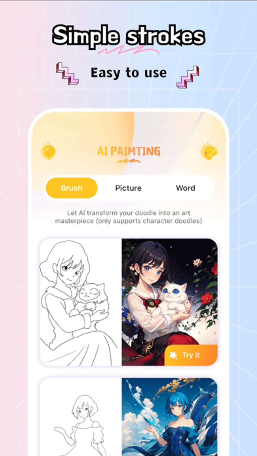 Just provide a sketch or simple line drawing, and AI will automatically recognize and generate beautiful pictures. Even if you have no painting experience, you can easily create stunning call posters.