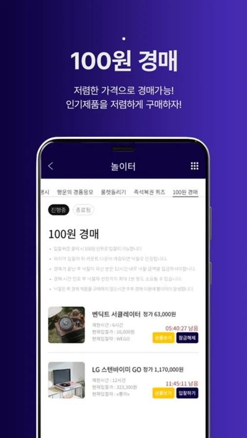 - 매일 경품응모, 룰렛, 즉석복권 퀴즈, 100원 경매를 통해 행운의 주인공이 되세요!!