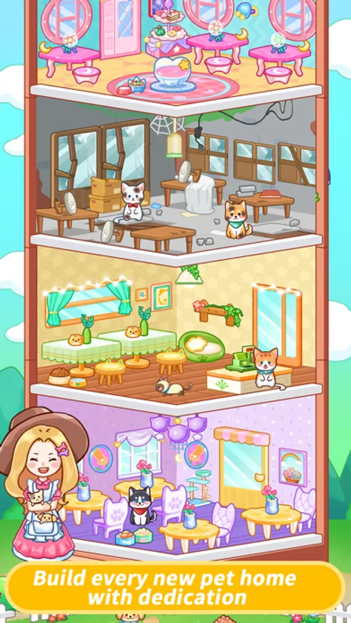 A mobile game that combines management gameplay and house decoration, allowing players to run their own animal restaurant and take care of stray animals, providing them with a warm home. In this game, your primary task is to clean up a rundown rescue center and transform it into a cozy and pleasant living space for the animals to reside in.