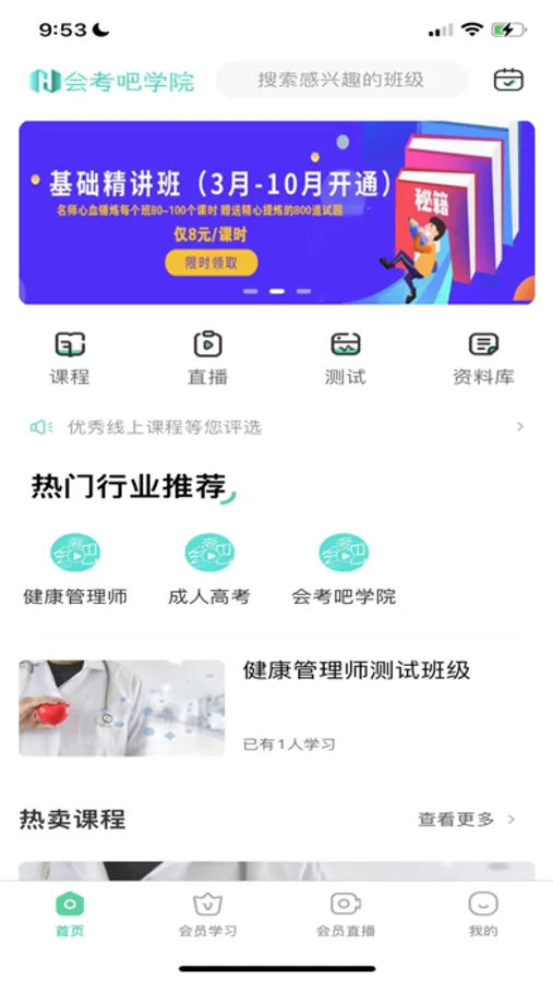 会考吧是宇威科技发展(青岛)有限公司旗下的一款面向教培机构的在线网校平台,支持多行业、学员在线购买班级课程。平台提供招生、教务、教学、考试、学习等场景的一站式服务,为机构解决办学过程中的各种难题。招生系统、教务系统、教学系统、考试系统四大后台系统,提高老师的工作效率,降低机构的运营成本。学员学习平台,支持APP、WEB、H5等多端学习,让学员学得会、考得过。会考吧还有更多教育定制产品,包含企业内训、政策定制、考试系统、短训定制。会考吧为机构的教培事业商业化形成完美的闭环,让天下没有难做的培训。