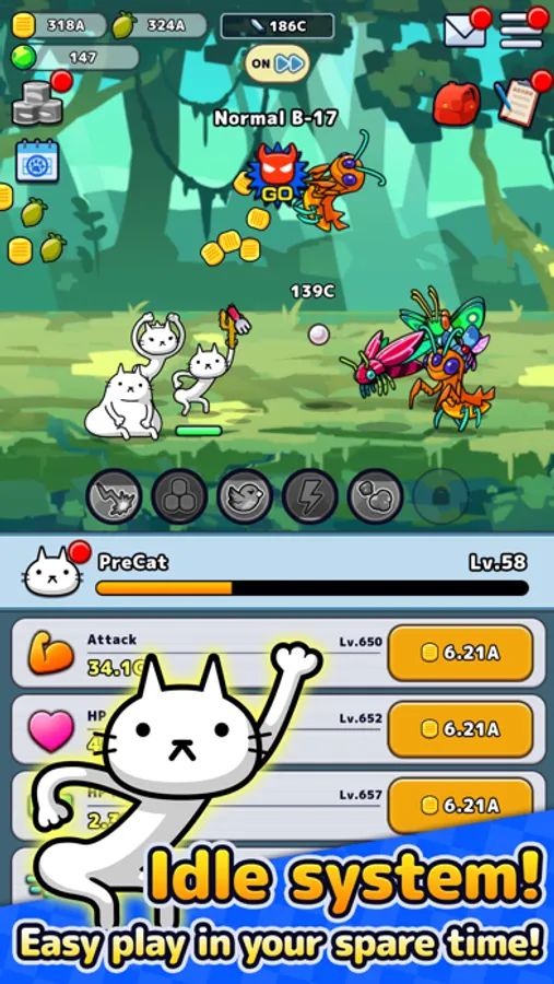 Play Idle, Easy and Simple Super Level Up RPG for Cute PreCats!