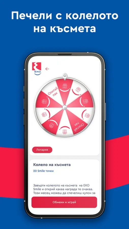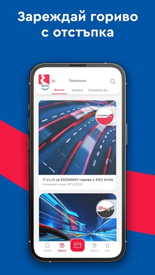 Зареждай любимите си горива и пазарувай от минимаркета в бензиностанции EKO с твоята нова карта EKO Smile. Така събираш точки, които обменяш за разнообразни оферти и игри. Можеш да обменяш точките и с приятели, които също са част от лоялната ни програма. С мобилното приложение EKO Smile лесно и бързо откриваш най-близките EKO бензиностанции до теб, а с дигиталната карта винаги носиш предимствата на EKO Smile удобно в телефона ти.