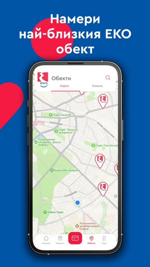 Fill up on your favorite fuels and shop from the minimarket at ЕКО petrol stations with your new EKO Smile card. This way, you collect points that you exchange for various offers and games. You can also exchange points with friends who are also part of the loyalty program. With the EKO Smile mobile app, you can easily and quickly find the nearest EKO gas stations to you, and with the digital card you always have the benefits of EKO Smile conveniently on your phone.