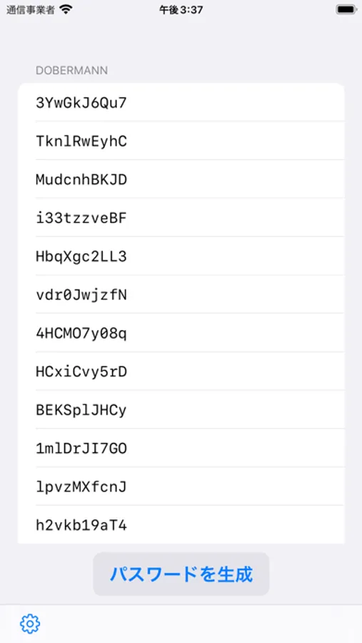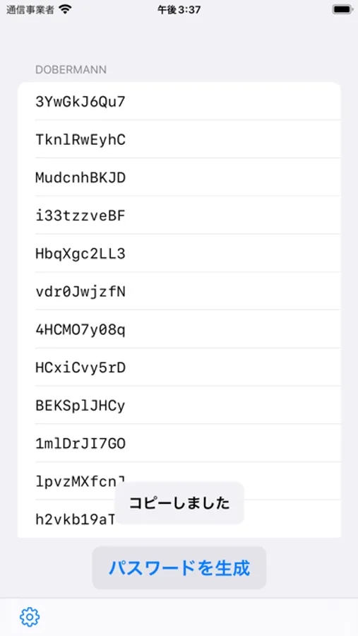 アプリを開いたらすぐにパスワード生成画面を開きます。