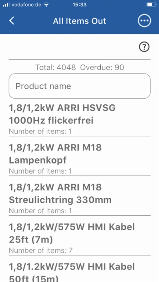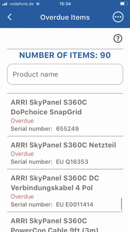 With this application, you can track all Items rented at ARRI Rental on Set: