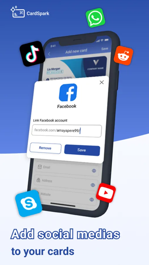 - Special feature: Add your social networks to your card visit