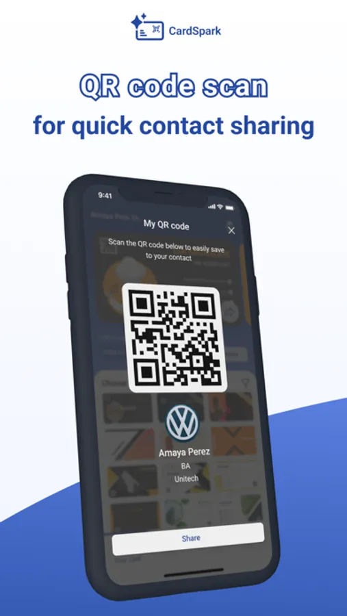 - Share contacts easily using QR Code Scan