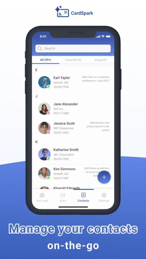 - Scan your business cards and auto-save them right on your phone