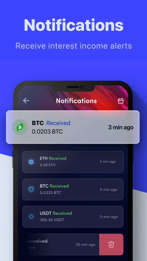 Use your cryptocurrency assets effectively. When you store your cryptocurrencies on Planbit, you will automatically start accruing interest payments on a daily basis. Choose between spot yield and Planbit token yield to enjoy the best rates while managing your funds. Start earning cryptocurrency interest right after buying or loading. You will receive comprehensive details of your gross income balance and cumulative unearned income.