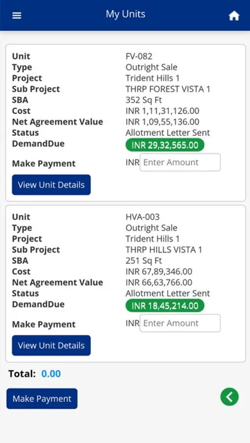 The Trident Realty Customer Zone Mobile app is for the customers who have purchased a unit from the Developers. The application helps the end customers to view their payment schedules and outstanding dues, monitor project completion, interact with customer sales executives and also view new project launches.