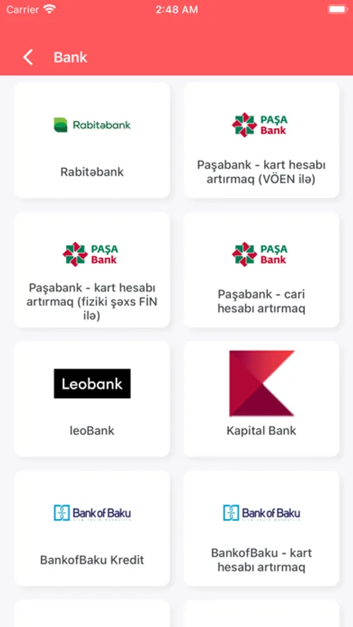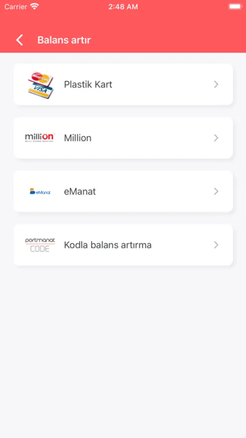 Portmanat vasitəsilə mövcüd olan ödəmə xidmətləri: