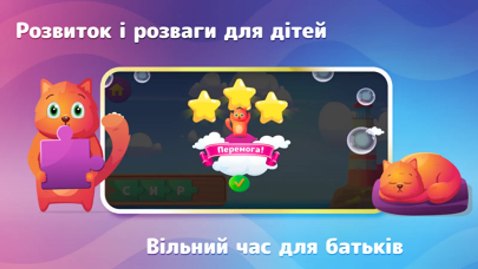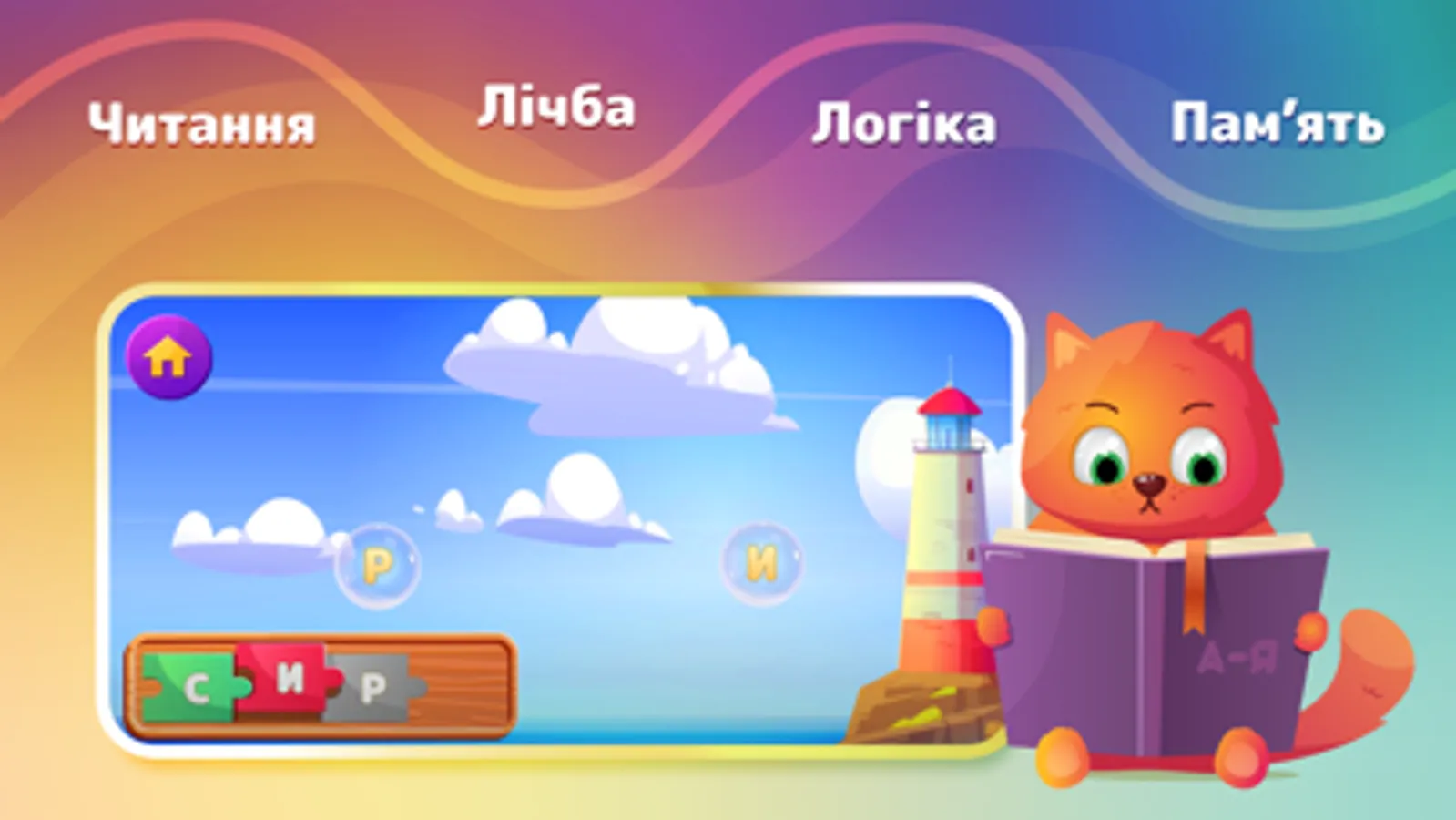 Безпечний для дітей контент дозволить гармонічно розвивати такі навички як читання, лічбу, логіку, тощо. Навчальний контент додатку розроблен у взаємодії з педагогом і психологом.