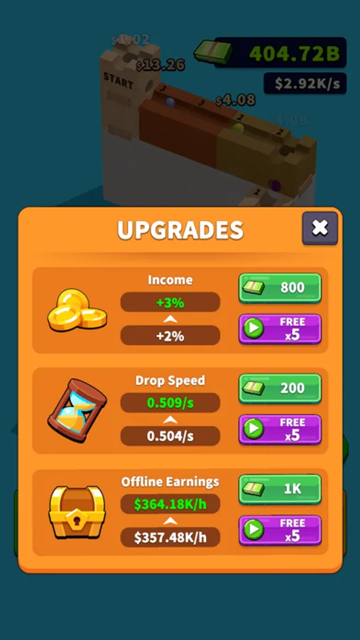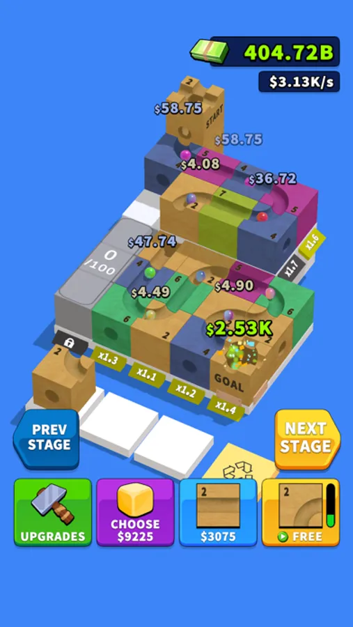 Upgrade your blocks to keep the marbles rolling and the earnings coming in.