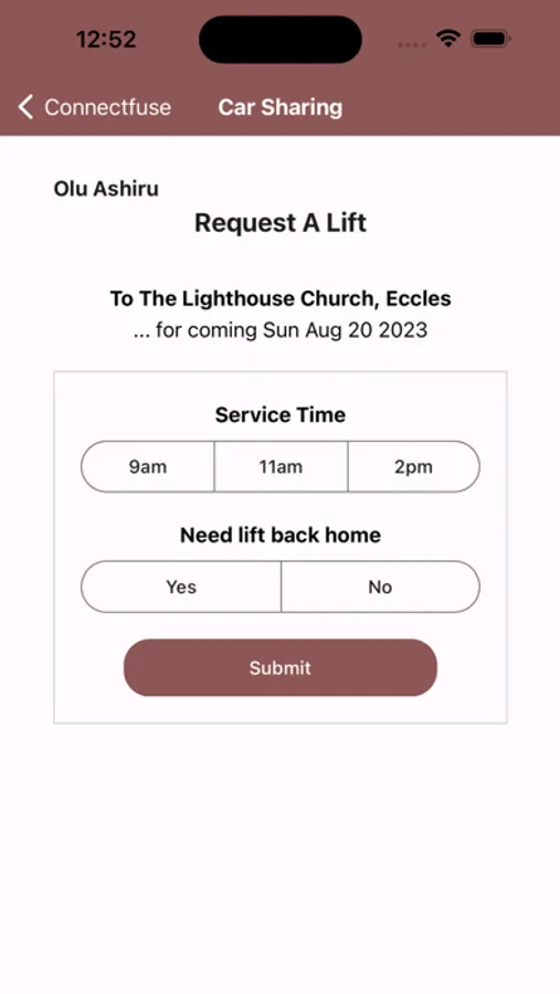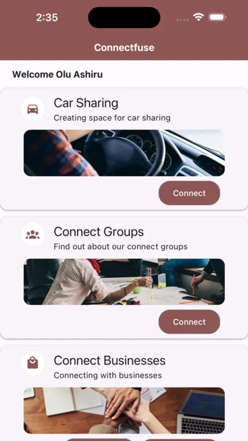Following admin approval members of members, members can use to app to arrange car lifts to a destination with people in a similar area, promote and find businesses, find small connect groups nearest to you. E.g a church member can use the app to both request for a lift as well as to arrange offering someone else a lift.