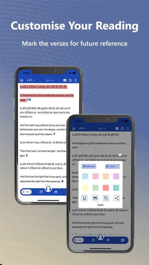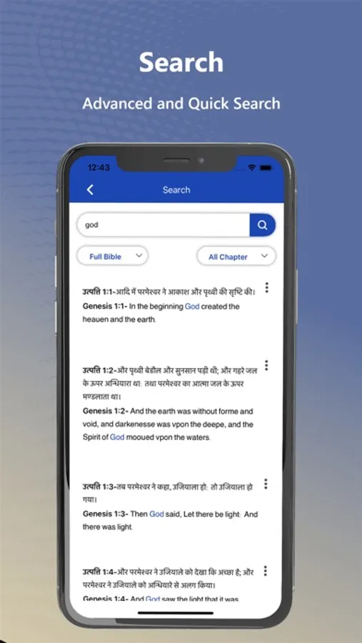 The Hindi English Bible is a simple and easy to use application to connect with God daily. You can access our Bilingual Holy Bible online or offline without any interruptions.