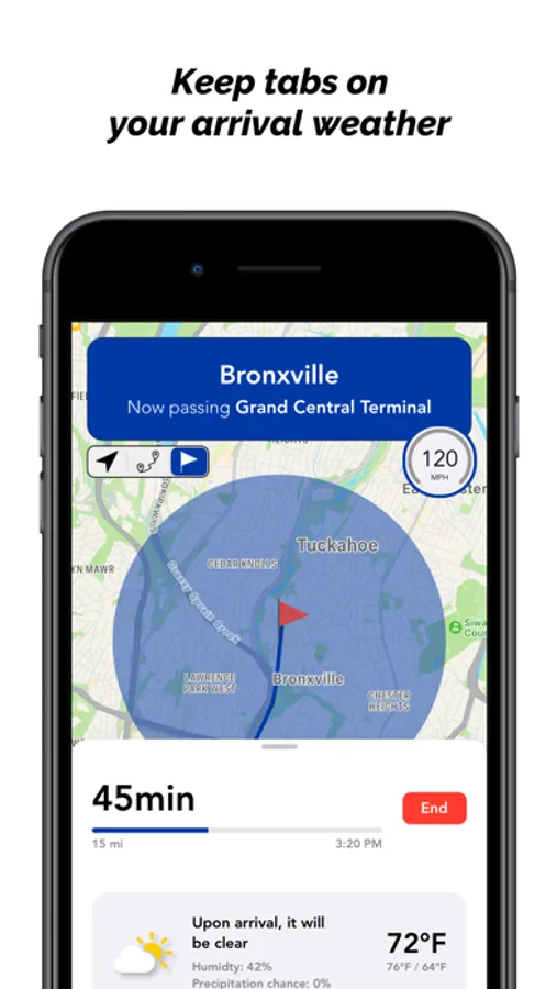 Destinations will tell you where you are currently passing, your arrival time, how long until you’re there, how far away you are, and even your speed!