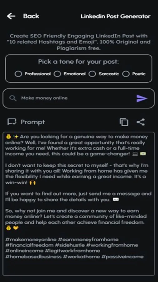 Unlock your writing potential with ChatWizard's AI Writing Assistant. Craft compelling content for every platform, from LinkedIn posts and social media captions to advertisements and email campaigns. Say goodbye to writer's block as ChatWizard helps you generate captivating copy effortlessly. With the Content Planner feature, you can stay organized and plan your content strategy seamlessly. Need inspiration for a domain name? ChatWizard has got you covered. It even assists you in writing YouTube video scripts and provides an essay outline app to make academic writing a breeze.