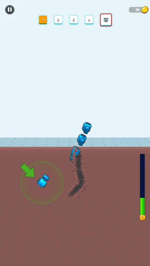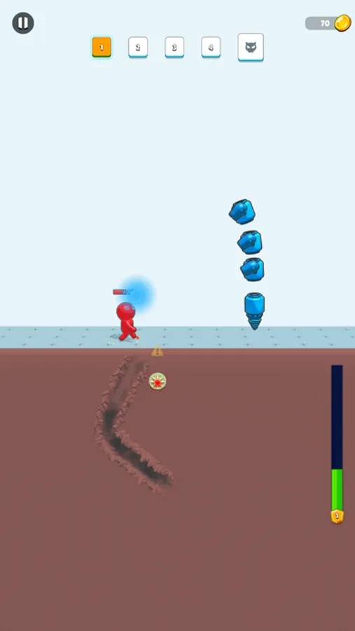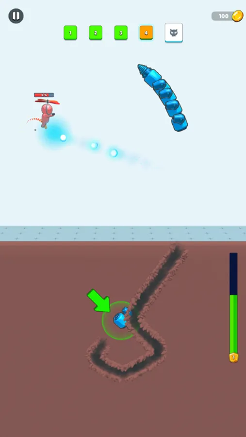 Jump upwards in the ground, neutralize the enemies, get the power-ups in the ground, get stronger and win the game!
