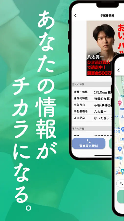* 指名手配情報:指名手配犯の情報を一元管理し、その情報を簡単に把握できるようにすることで、市民一人ひとりが警察と協力して犯人逮捕に貢献できます。