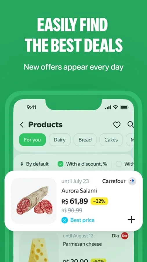 Lessy is a free application with discount catalogs of every go-to supermarkets and stores (check the list below) up to 100% of goods price.