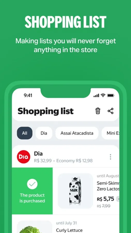 • Shopping list. You won’t miss deals and avoid unnecessary purchases by adding offers and any products to the list.