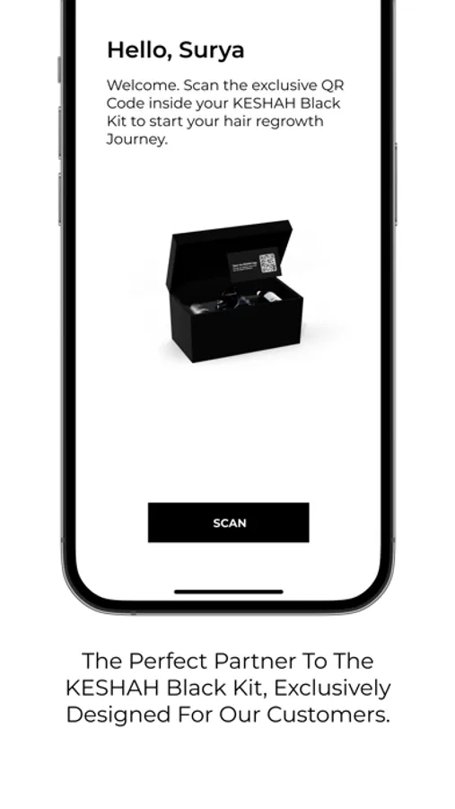 "Welcome to the KESHAH app - a bespoke, exclusive experience for our customers. We've meticulously crafted this app to guide you on your hair regrowth journey, offering a unique, data-driven approach.