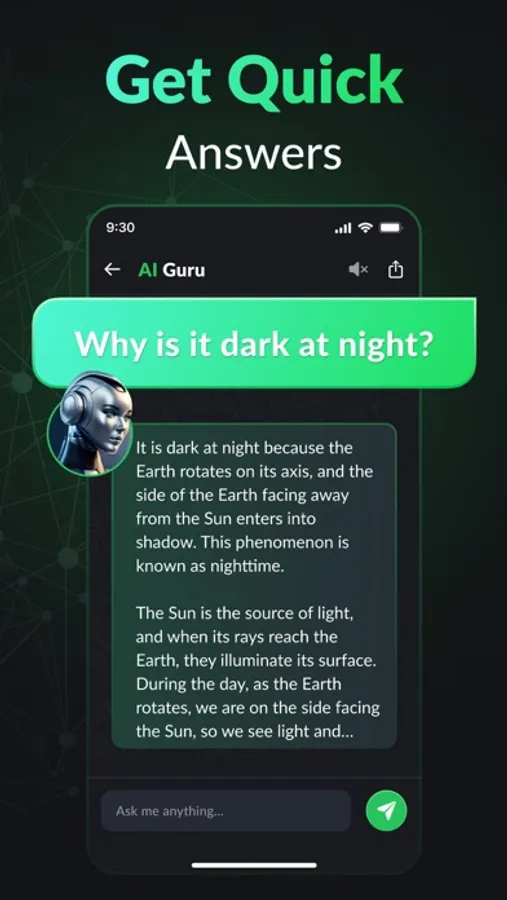 AI Guru is your personal chatbot assistant. You can ask it about anything and the bot will give you a quick and accurate answer. This is an essential app for everyone! And now you will know why!