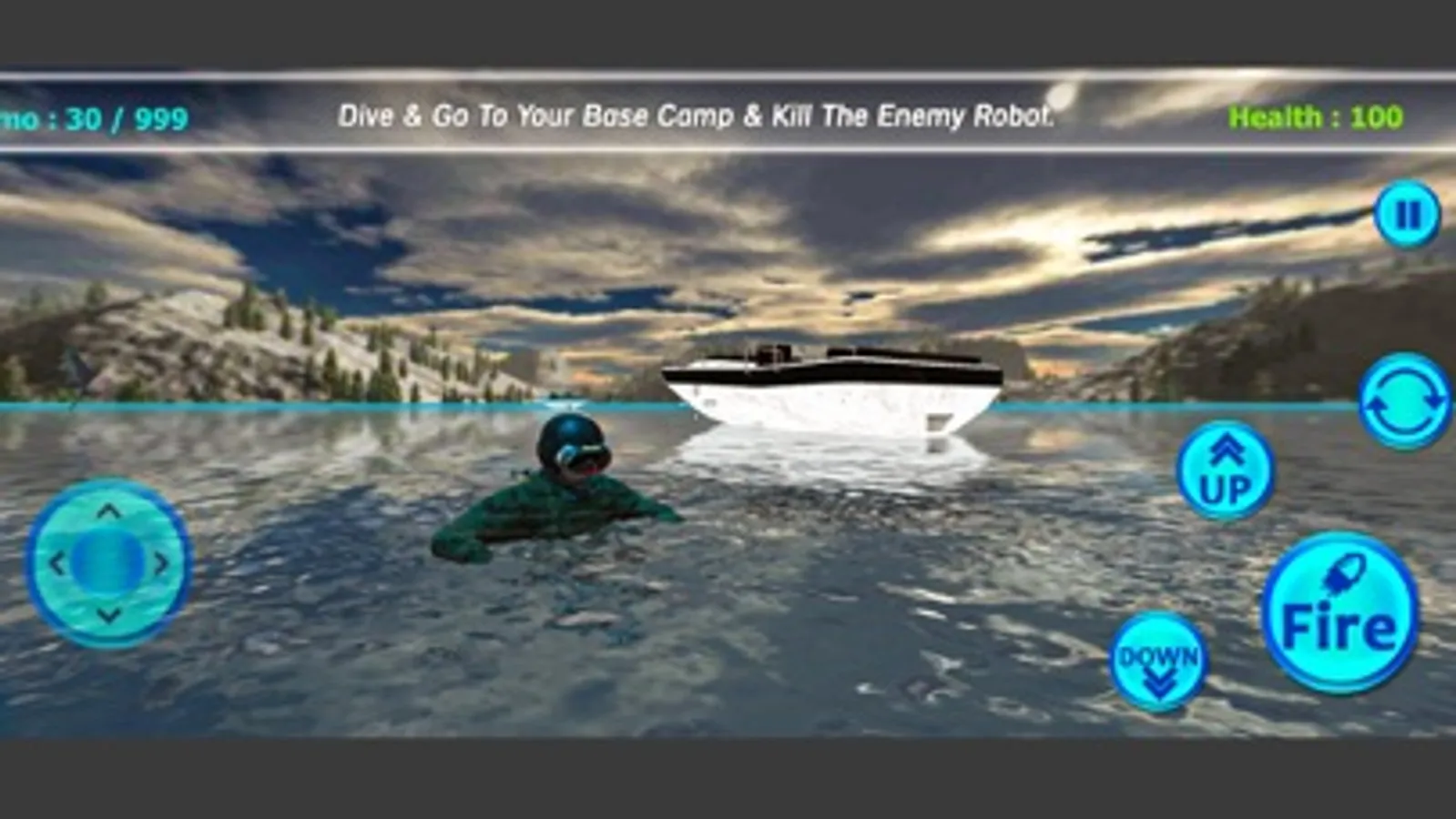 5. Realistic controls for smooth swimming and robot shooting gameplay