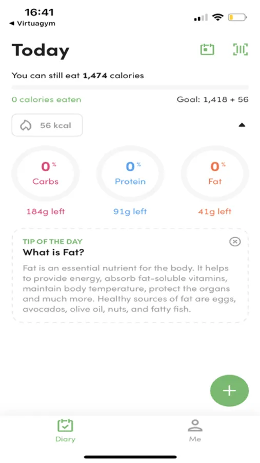 - nutrition tracking and calorie calculation based on goals, with meal inspo.