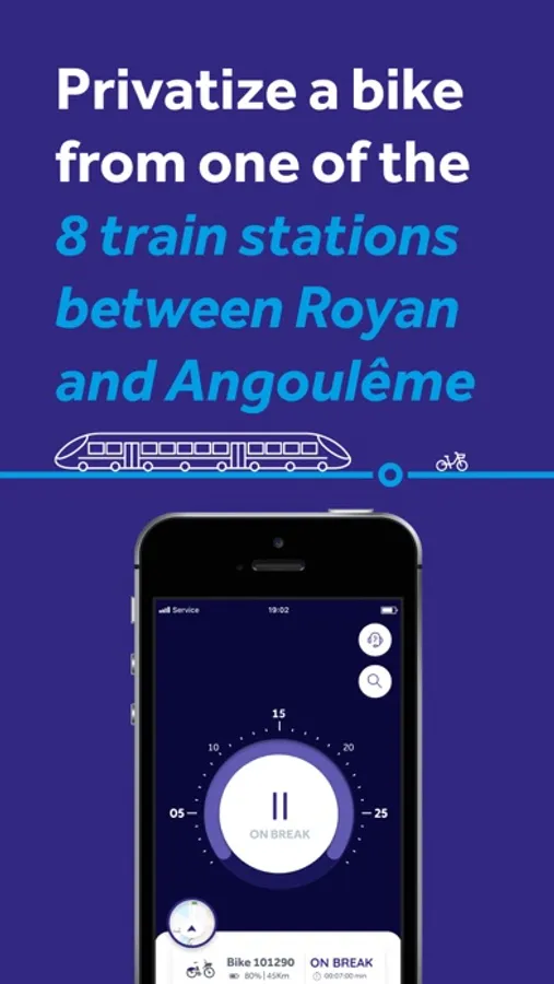 Grab the handlebars of an electric bicycle from any train station served by the TER Royan-Angoulême line. (Royan, Saujon, Saintes, Beillant, Cognac, Jarnac, Châteauneuf, or Angoulême)