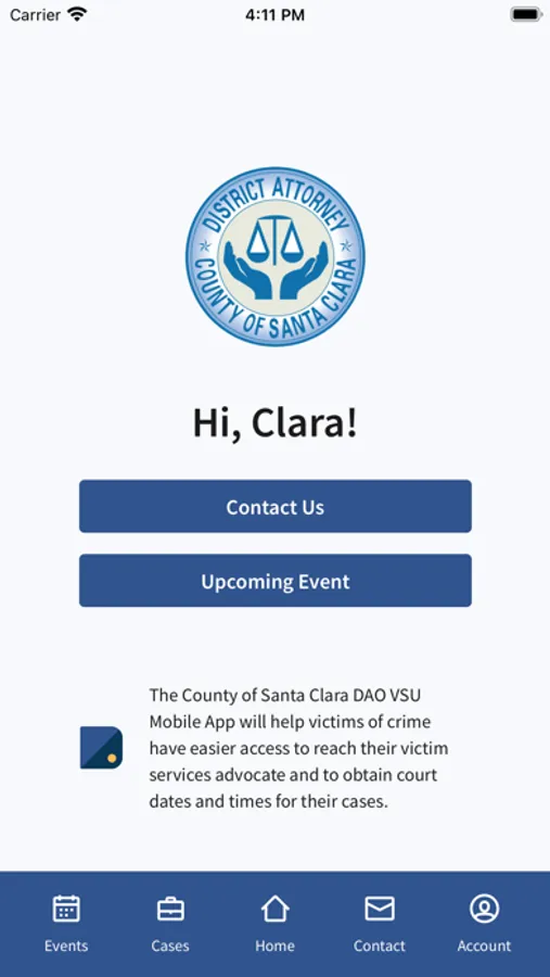 The County of Santa Clara DAO VSU Mobile App will help victims of crime have easier access to reach their victim services advocate and to obtain court dates and times for their cases.