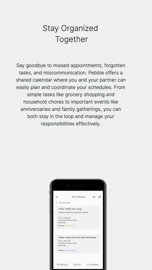 A relationship app that helps you keep track of tasks and organize life together, also assisting in keeping moments memorable while we help you plan dates and more!