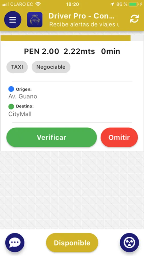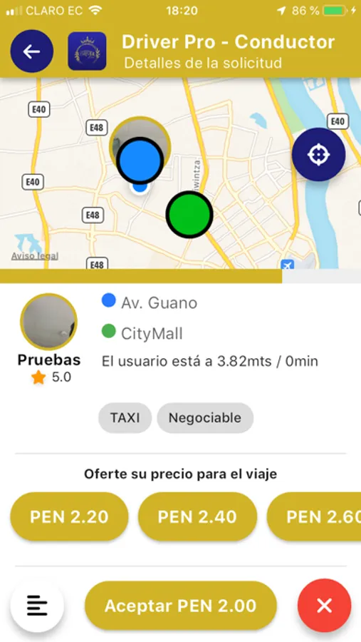 DriverPro te permite ver ubicación del pasajero y la tarifa antes de aceptar la solicitud y viajar.