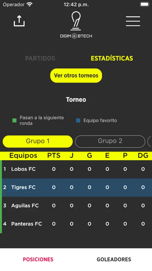 - Seleccionar tu equipo favorito y sus estadísticas.
