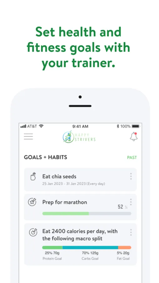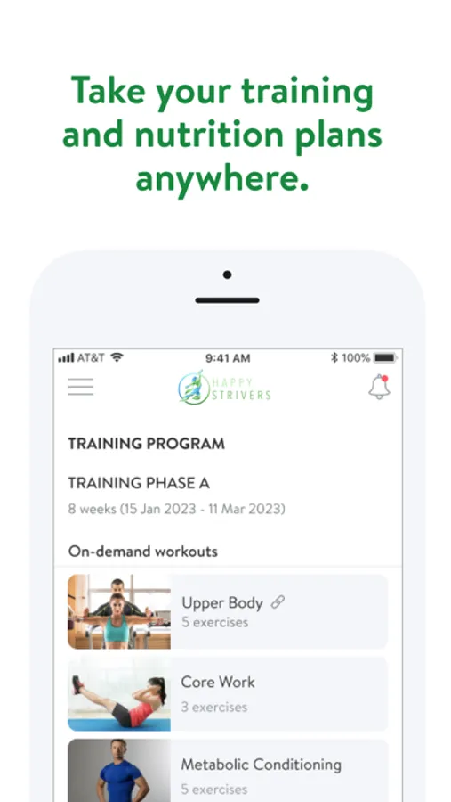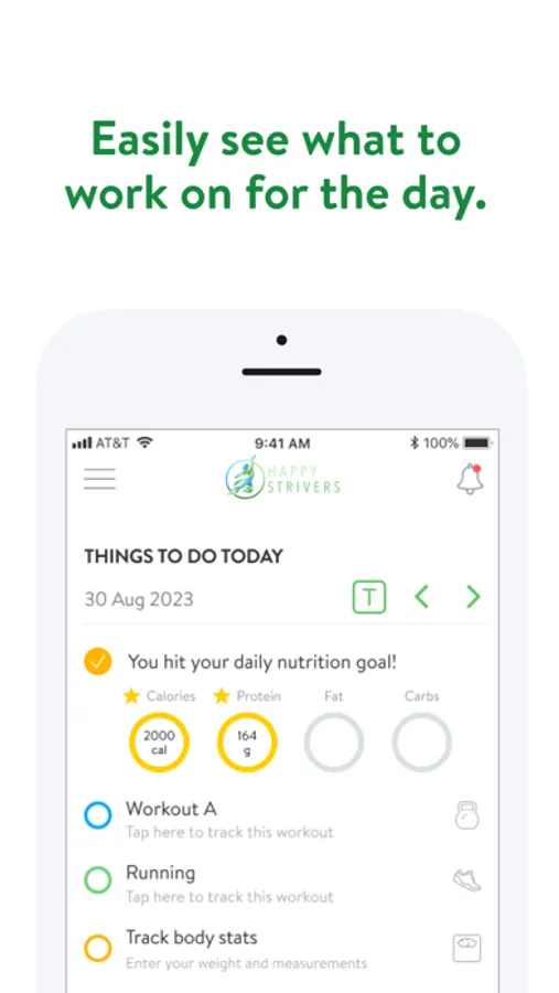 With the Happy Strivers App, you will have access to workout programs designed specifically to help you reach your fitness and health goals! You can follow & track your workouts, your nutrition, your lifestyle habits, measurements and results–all with the help of your coach.