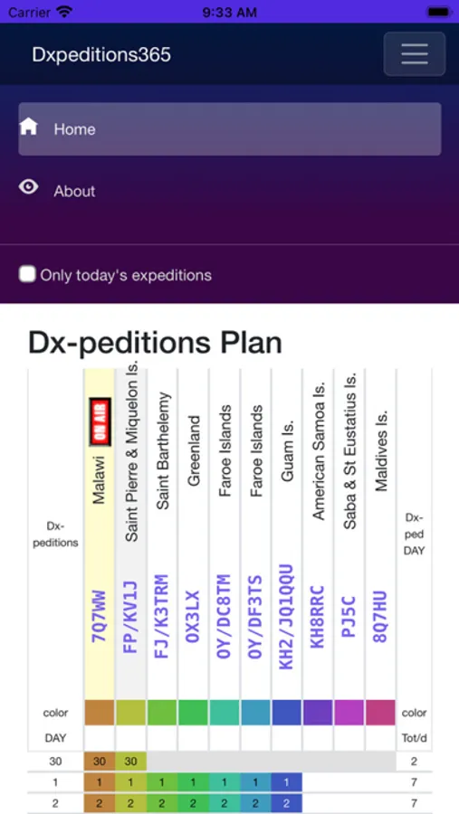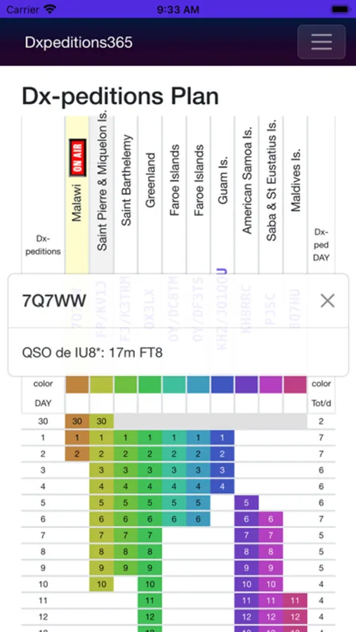 Dx-peditions365 let you follow the main DX-peditions on a dedicated calendar page that shows the schedule of all monthly expeditions, running dxpeditions and even shows the dxpeditions reported on their users logs or cluster spots. App dedicated to amateur radio - https://www.ham365.net/Dxpeditions