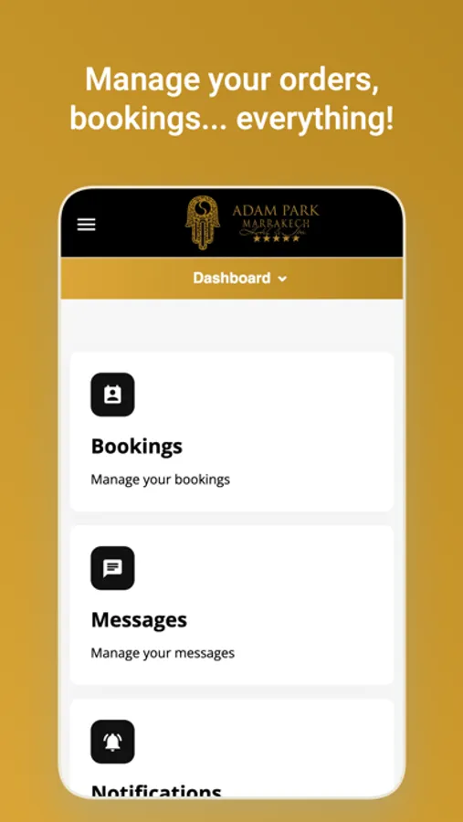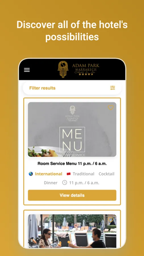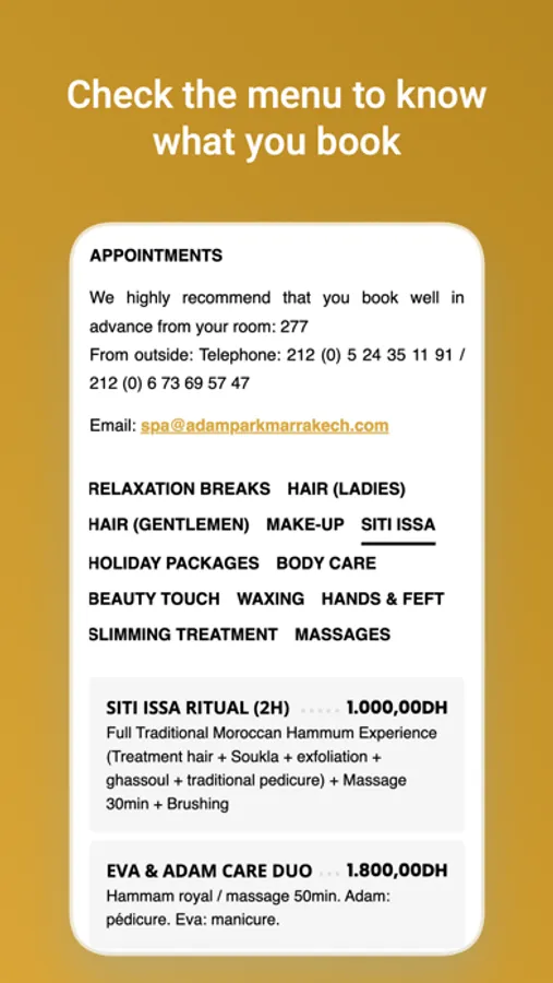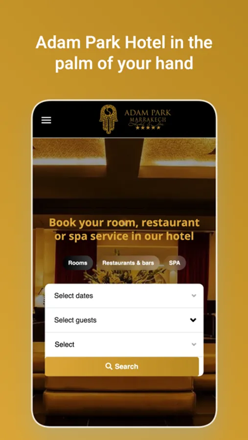 The ADAM PARK MARRAKECH HOTEL & SPA in the palm of your hand. Check all the possibilities and book any restaurant, spa or room services.