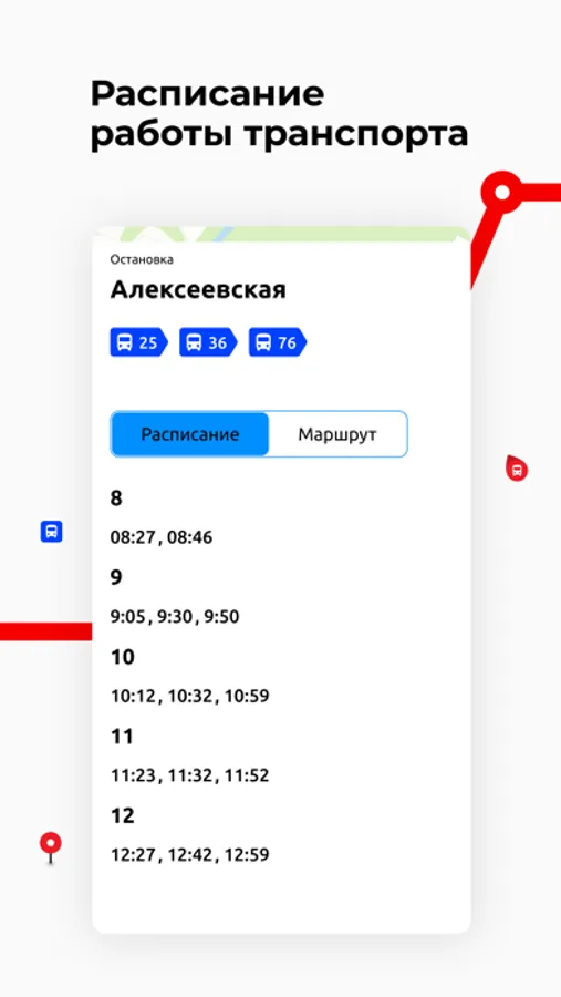 -узнать расписание и прогноз прибытия транспорта на нужную остановку;