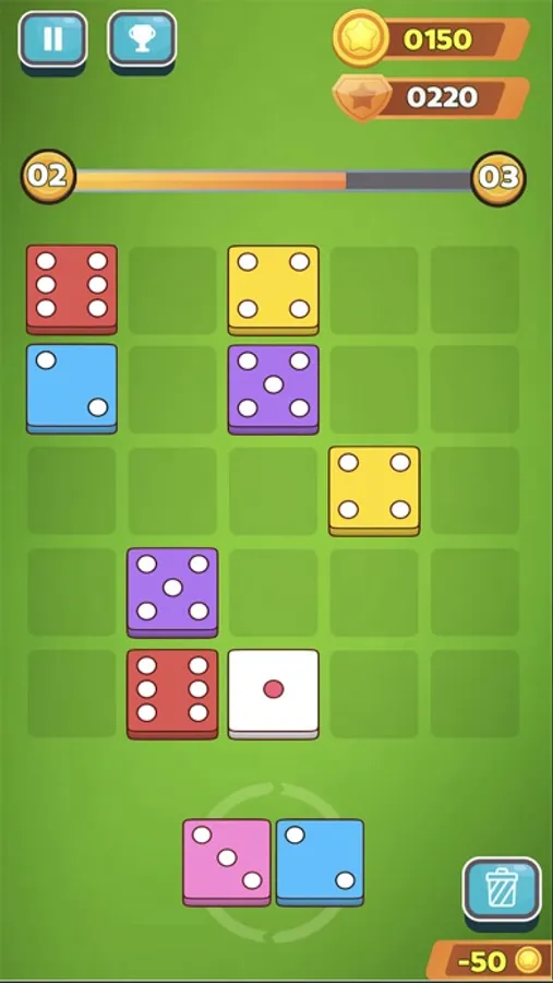 Drag and drop different dice blocks onto the puzzle board and try to make your match!