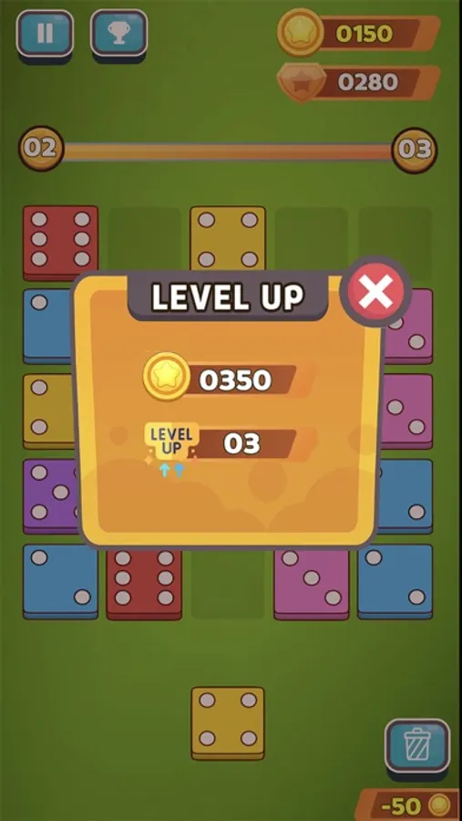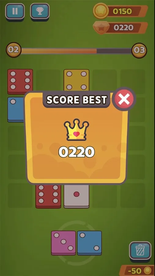 Create and collect ruby gems by matching 3 dice of the same color to merge into higher values.