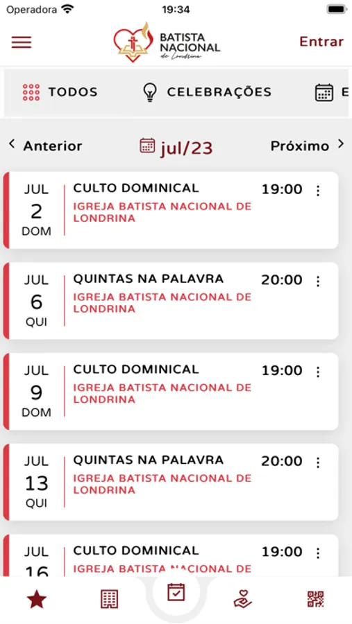 * Ver o calendário de Cultos, Eventos;