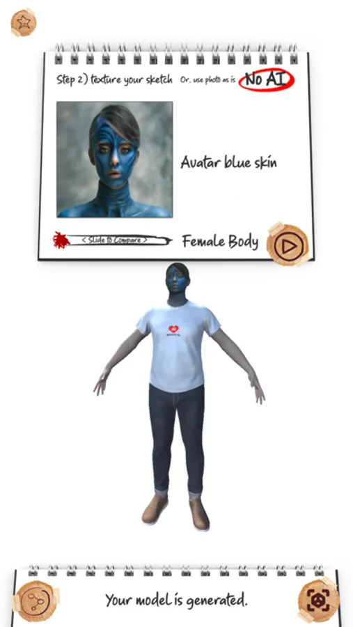 Turn your sketch into a vivid masterpiece 3D avatar using AI - or any photo.