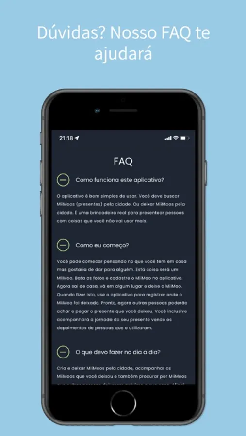 Para disseminar alegria e presentes. O MiiMoos permite que você cadastre presentes que você deseje dar para outras pessoas. Uma vez cadastrado, deixe em um lugar qualquer pela cidade e acompanhe a trajetória do seu MiiMoo e as pessoas que ele impactou