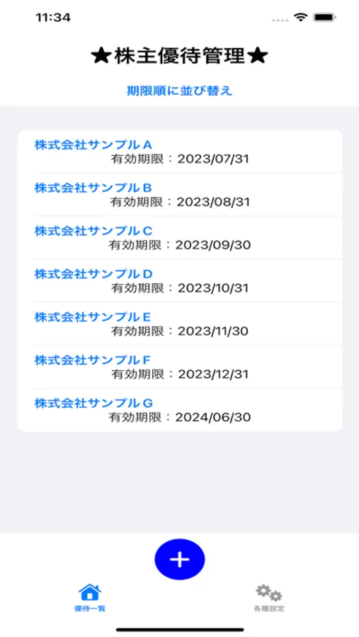 ・各種優待の有効期限の近いものを即時に確認することができるので、優待の期限切れを防止できます。